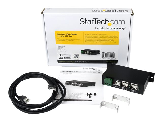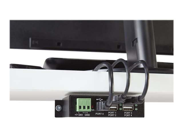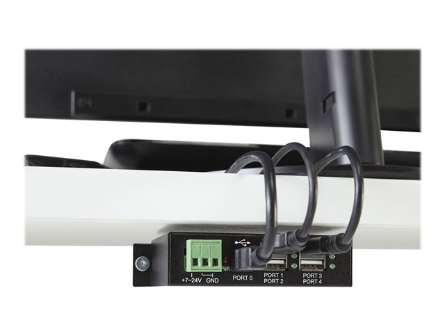4 Port Rugged Industrial USB 2.0 Hub - Hubb - 4 x USB 2.0 - DIN-skenmonterbar - Likström - för P/N: ITB20D3250, MSDREADU2OTG, USB2HAB15, USB2HAB30AC, USB2HAB50AC, USB2HABM1, USB2HABM6RA